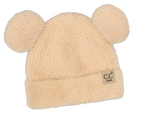 Expertly crafted from 100% nylon, the CC Fuzzy Kid Teddy Beanie in Camel or Beige is the perfect choice for your little one. This beanie features a soft, plush teddy bear design with double poms that will keep your baby cozy and warm. Measuring 7.5" x 6.75", this one-size beanie is suitable for kids 2+ (or adults with small heads).