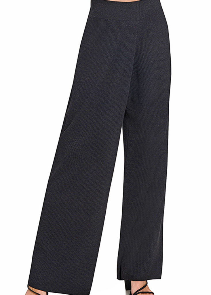 These viscose-blend sweater pants combine softness with structure, featuring a responsive elastic waistband that adapts to your body throughout the day. The fabric composition—72% viscose and 28% polyester—creates a drape that's both fluid and supportive. With a 30" inseam and 27" total waist (measured from small), they offer a refined silhouette suitable for multiple occasions. The ash jade and black colorways provide understated elegance, making these pants equally at home during relaxed evenings or polished daytime wear.