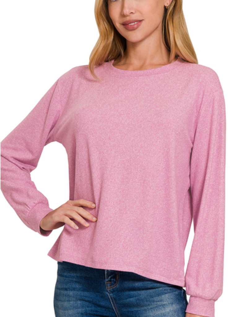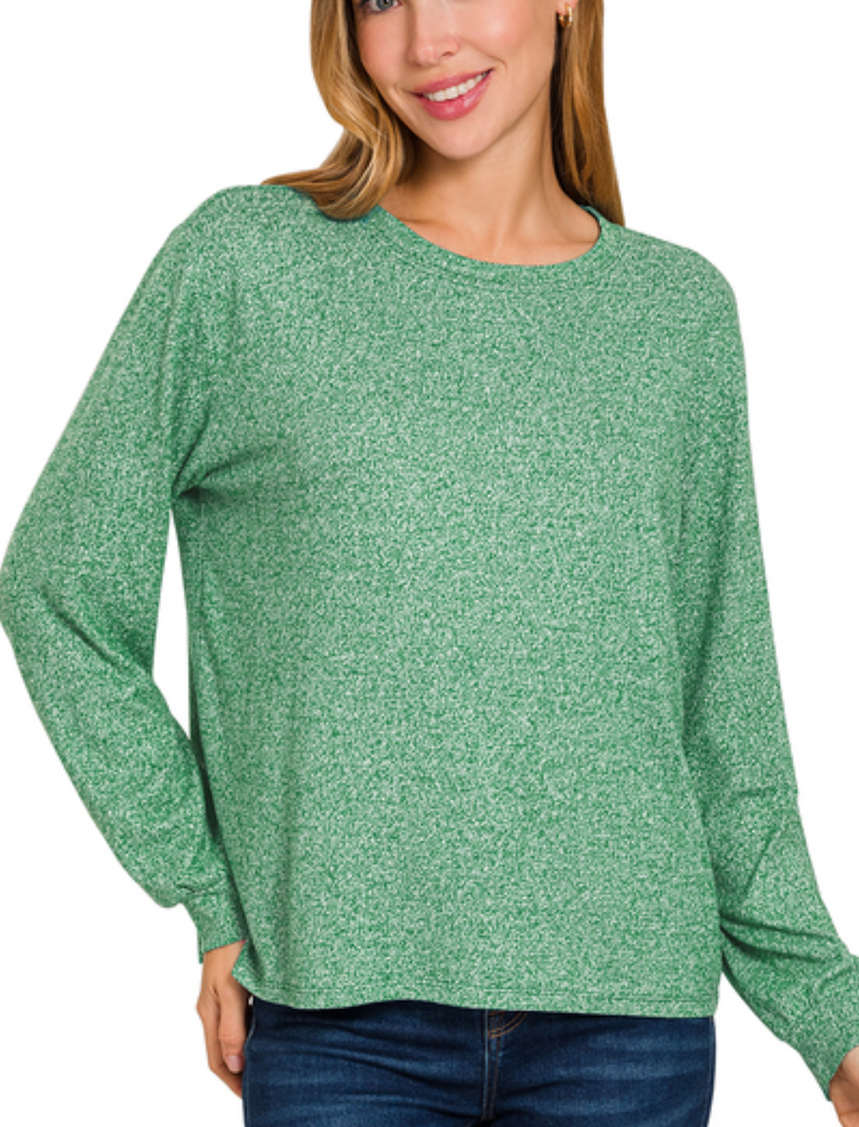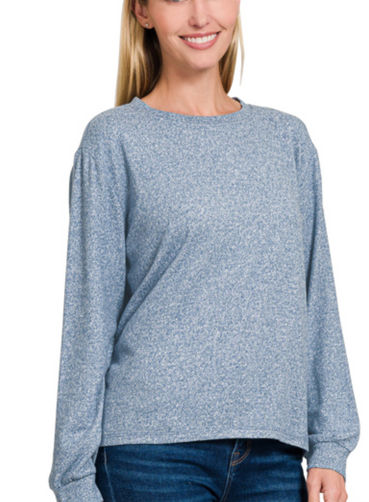 Expertly crafted with a relaxed, oversized fit and made from a luxuriously soft melange hacci material consisting of 95% polyester and 5% spandex, this round neck long sleeve shirt offers both comfort and style. Perfect for everyday wear or lounging at home, this shirt is a must-have addition to any wardrobe. Measures 23" long and 42" in the chest in size Small and 25" long and 50" in chest in 1X.