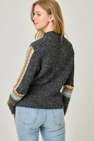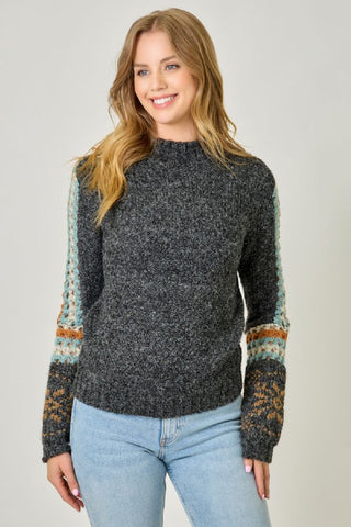 This Mock Neck Fair Isle Cuff Sweater combines timeless design with practical comfort. Featuring long sleeves adorned with intricate crochet detailing, the sweater showcases a refined aesthetic perfect for layering or standalone wear. The ribbed knit construction at the mock neck, hem, and cuffs provides a structured fit that maintains its shape through regular wear. Crafted from a durable blend of 67% acrylic, 18% polyester, and 15% nylon, this sweater offers warmth and breathability while resisting pilling and fading. An essential piece for any versatile wardrobe.
